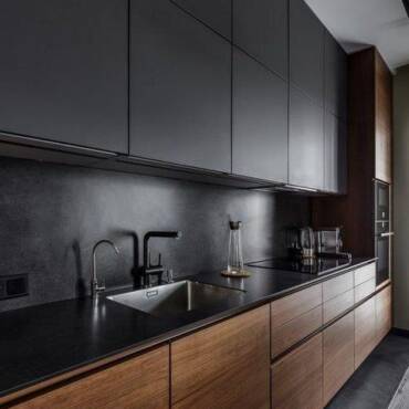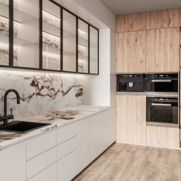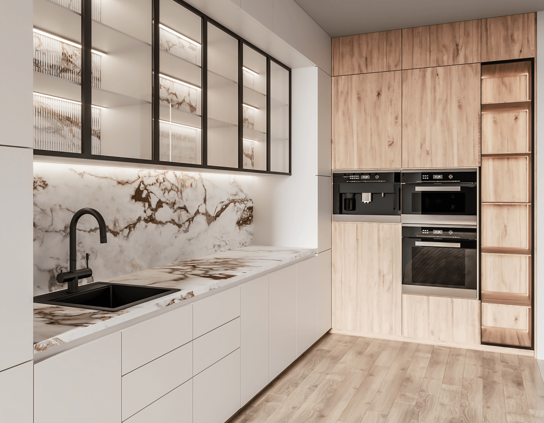 Luxury domestic kitchen with elegant wooden design generated by artificial intelligence